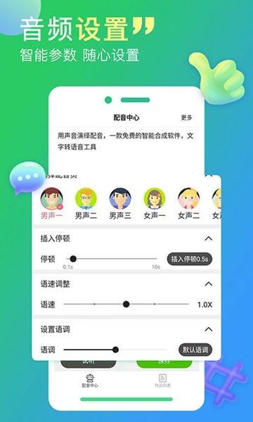 3.多种配音声音可以选择,支持文字转语音,操作非常简单,配音家智能参数,随心设置。