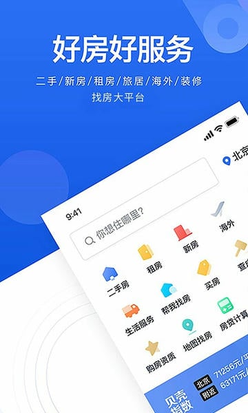 拥有二手房、租房、新房、海外房产、旅居等众多分类模块