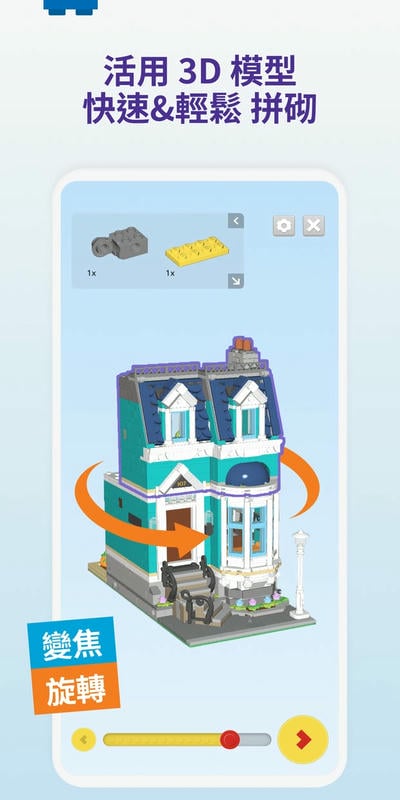 -参考该应用程序内的互动数字拼搭说明进行拼搭 -你可以在特效视觉模式下旋转,缩放和查看模型,为您提供最直观的拼搭体验