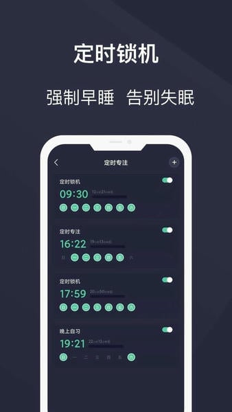 --定时锁机,告别玩手机而熬夜或耽误工作学习;