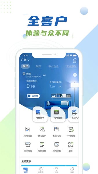 【基础业务】随时随地办理各类用电业务,包括电费查缴、用电报装、停电报障等;