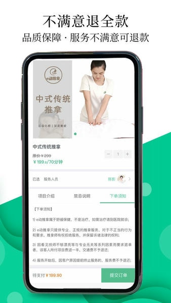 e动推拿app是这两年发展非常迅猛的同城按摩服务平台,如果您想体验一把高品质的推拿服务,那该平台上面的专业推拿技师一定是正确的选择。只要大家成功预约下单,那24小时内对应的技师就会提供上门服务哦!
