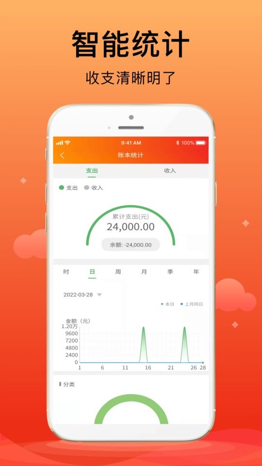 3.一键记账,记账就是这么简单,多种账目分类,让您的账单清清楚楚;