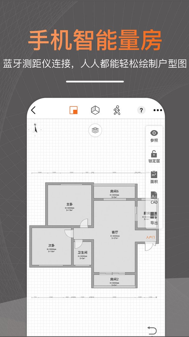 【手机智能量房】测距仪蓝牙链接,精准量房,快速绘出3D户型图;