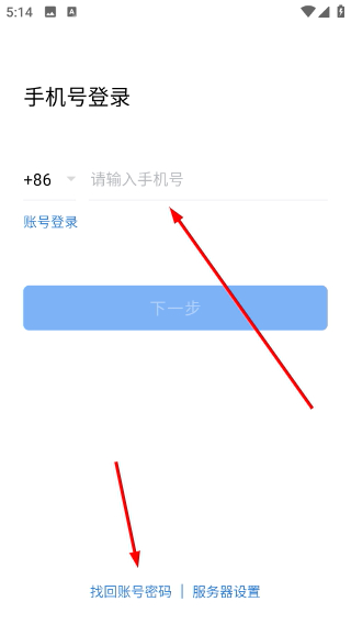 2、进入手机号登录页面后输入手机号,点击下一步完成后续登录操作。