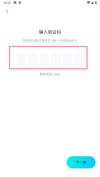4、填写收到的短信验证码,点击下一步完成账号注册。