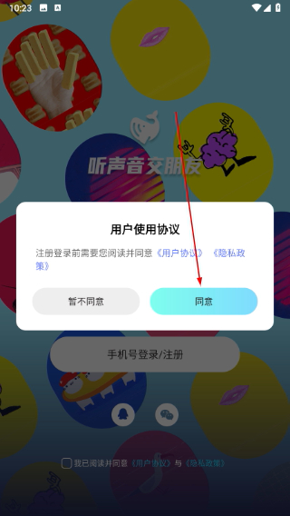 2、点击同意按钮,确认用户协议与隐私政策相关内容。