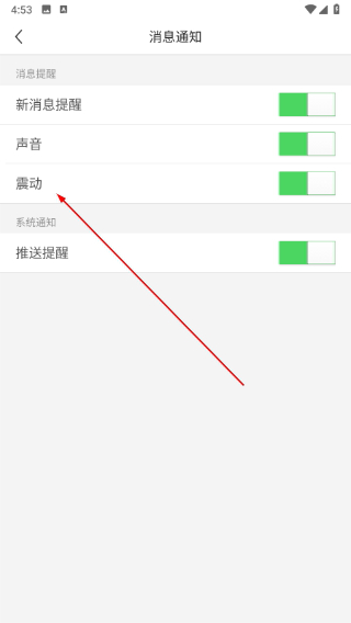 4、点击震动和声音开关,完成声音震动提示关闭。