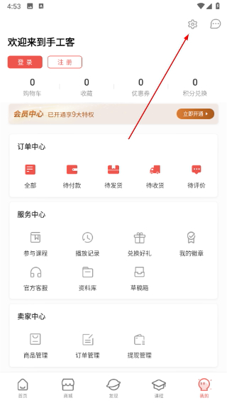 1、打开手工客软件,点击我的进入个人中心页面。