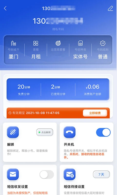 2、号码回收机制在停止续费后保留三十天冷静期,期间续费可恢复原有号码使用权。