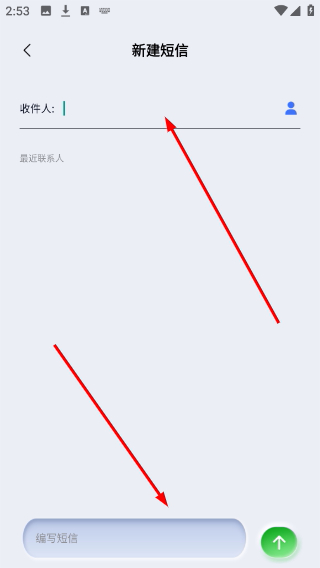 4、在新建短信页填写收件人号码和短信信息,点击发送按钮完成操作。