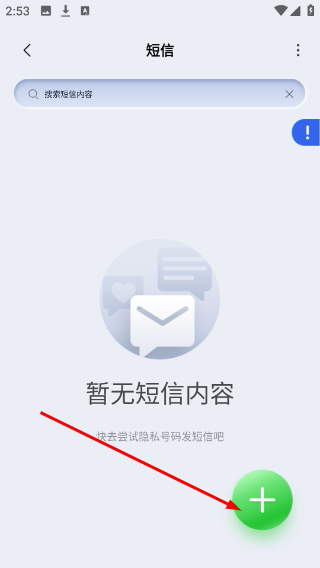 3、切换下方类型到短信页面,点击右下角的绿色加号按钮进入新建短信界面。
