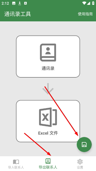 3、切换到导出联系人选项,准备将通讯录数据导出为Excel文件格式。