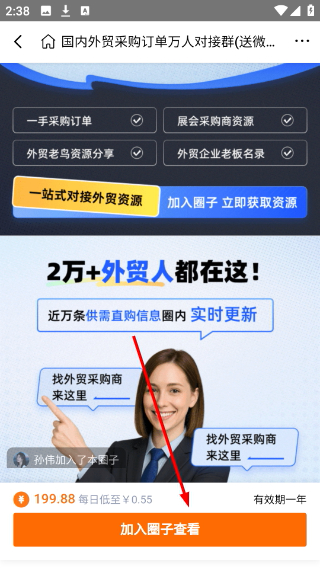2、进入群组页面后可了解资源服务,点击加入圈子查看获取相关外贸资源。