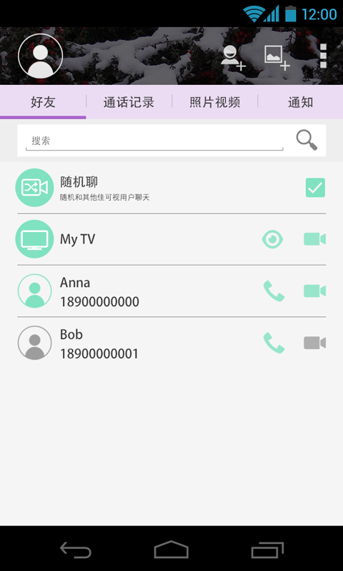 佳可视——跨平台高清视频通话,最新随机聊功能,交友就是这么简单!一款集多种功能于一身的潮流视频聊天软件,操作简单,界面简约,让你从此恋上视频通话!