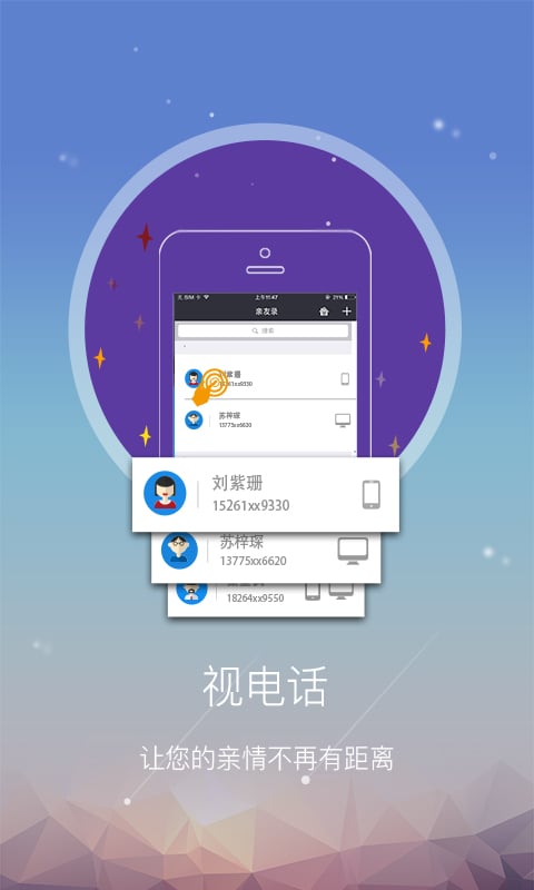 视电话app是一款创新的视频互动应用产品,创新的视频通话高清互动IP电话,一个实时看家低成本解决方案,视电话,想见立现!
