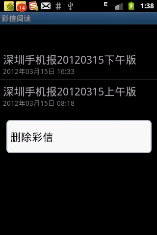 彩信阅读是最小、最快、最好用的彩信阅读软件,可以完整阅读彩信手机报内容,并可直接打开彩信中的超文本链接,阅读各类彩信手机报纸必备。