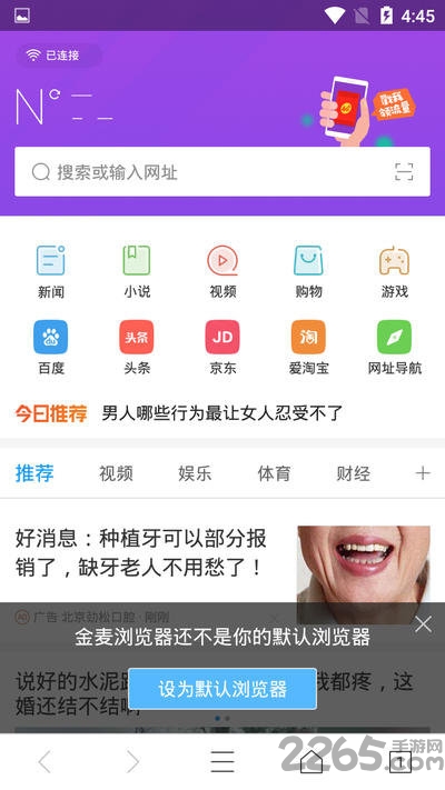 金麦浏览器是一款功能强大的手机浏览器,该浏览器有着非常简洁的操作界面,丰富的功能选择,各种实用的设计,超快运行速度,稳定无卡顿,还能自动拦截广告.感兴趣的朋友可以来2265安卓网下载.