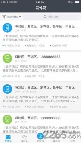 4.【收发箱】发送详情和接收详情一目了然,短信回执实时刷新,短信送达情况尽在掌握。
