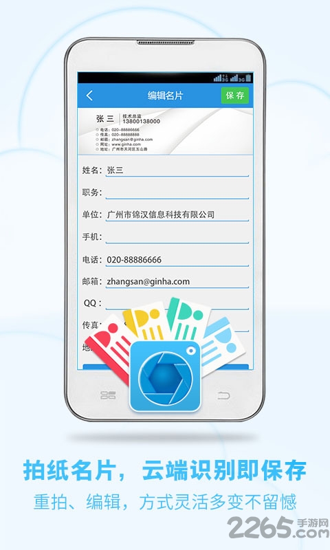 掌上有名app是一款非常棒的智能通讯名片识别app。软件能快速的识别他人的名片信息,并且快速的进行储存,还能及时的进行有效搜索,让你不会错过商机!你还在等什么?快来2265安卓网下载吧!