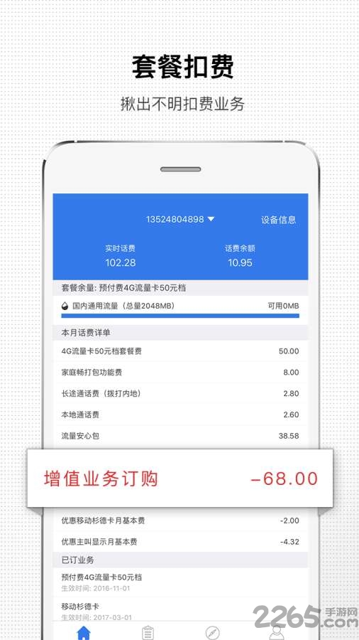 手机话费助手是一款极简话费查询APP,揪出不明扣费业务,让话费用得更安心,一键查询已订业务、套餐、通话和流量等所有话费项目,一目了然。