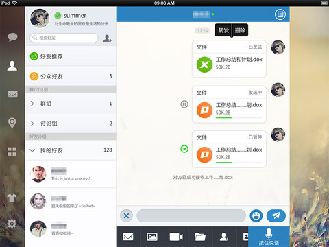 3.飞信实现无缝链接的多端信息接收,mp3、图片和普通OFFICE文件都能随时随地任意传输,让您随时随地都可与好友保持畅快有效的沟通,工作效率高,快乐齐分享!
