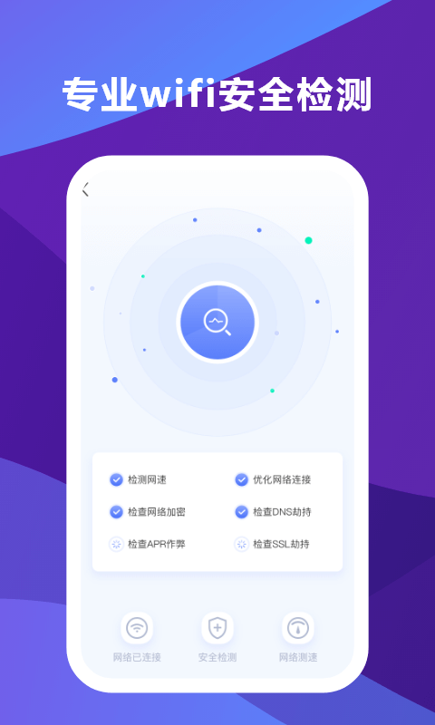 2.WiFi安全检测:检测6项网络安全,联网设备,网络速度等,护航上网安全;