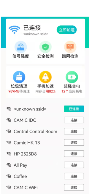 畅连wifi极速版软件是一个专注于手机wifi连接的智能WiFi管理服务平台。相较于之前的版本,极速版极大的缩小了软件的内存大小,免去了用户手机内存不足的忧虑,为用户提供方便快捷的手机wifi管理,智能优化WiFi查询和网络。快来下载体验吧!