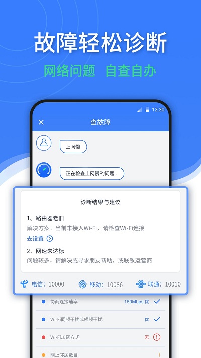 2.在随申查app中,用户还可以进行网络故障的在线诊断,让用户十分轻松的就可以解决各种的网络问题,软件会根据各种的故障为用户提出解决建议。