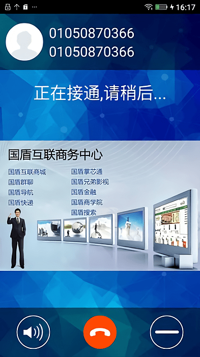 集通讯、商城购物、支付于一体的移动应用,及时通信软件,旗下的国盾云商城覆盖了公司的所有产品,而且能够实现不消耗流量进行通话,真正不耗流量的免费电话,使用“回拨”技术,即:1.系统同时呼叫双方,2.双方接通即可通话。快来下载试试吧!