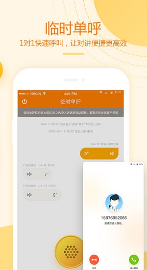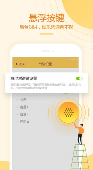 ·可以设置悬浮按键,一键式对讲,可以随时按下发起说话