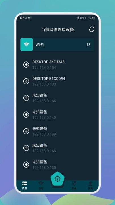 2、可疑设备检测,扫描您连接的WiFi环境下,是否有其他未知的网络设备;