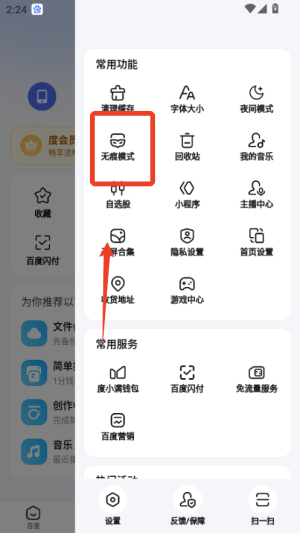3、浏览网页时想保护隐私,可点击搜索框右上角的无痕模式,关闭后不会留下记录,收藏的页面则会自动同步到个人账户。