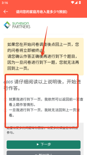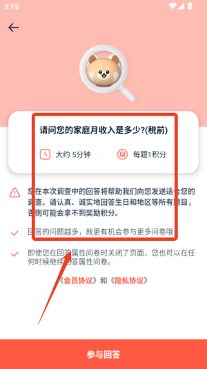 2、点击感兴趣的调查开始答题,认真填写每一项内容,提交后系统会自动审核并发放对应积分奖励到账户。