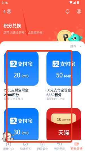 3、积分数值达到兑换门槛后,去奖励中心选择想要的礼品或提现选项,按照提示操作即可完成兑换流程。