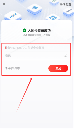 3、通过邮箱管理功能可输入对应账号与密码完成新邮箱账户的绑定与添加操作。