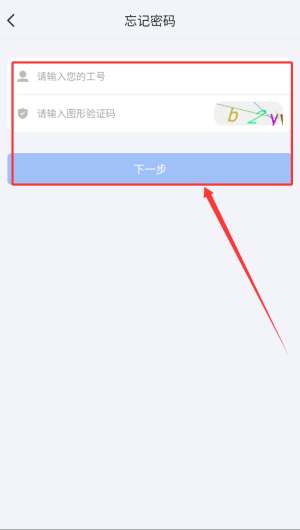 2、如果忘记密码,输入你的工号和验证码点击下一步,根据流程找回密码。