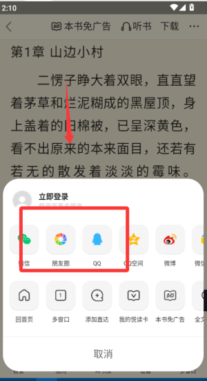 4、遇到精彩段落可使用分享功能,通过微信或qq推荐给朋友。阅读中碰到生僻词,长按选中并查询词义。