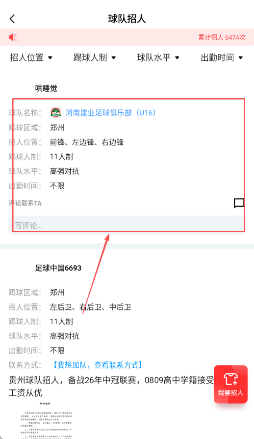 4、进入已创建的球队页面查看成员,点击球员人数查看队员列表信息,通过个人主页查看详细资料。