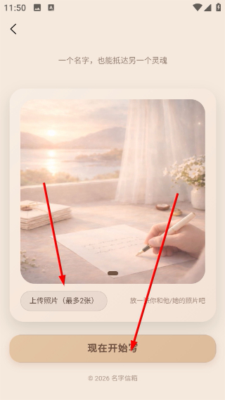 2、页面可以上传照片,在上传照片后点击现在开始写,可进入写信页面选择写信的场景。