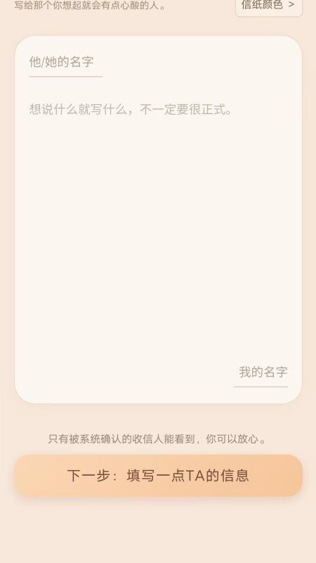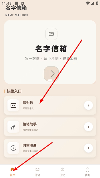 1、进入首页点击写封信,即可开启写信流程写给某个人传递自己的心意。
