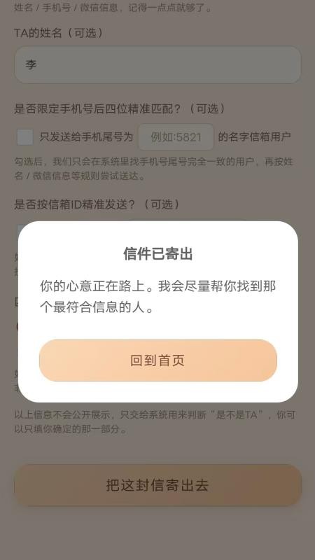 3、寄出信件设有二次确认弹窗,提示用户确认内容无误后再执行发送操作。