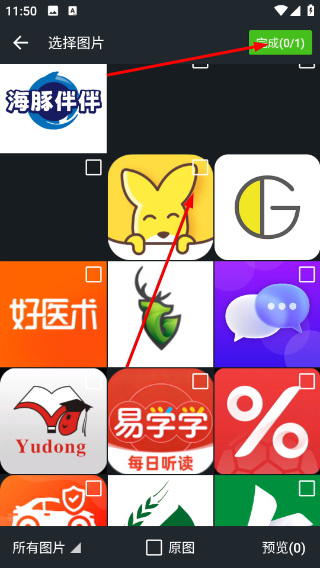 3、在写信页面可点击上传照片,选择相册中的图片点击完成完成图片上传。