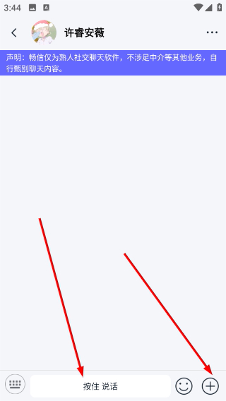 3、点击输入框左侧语音按钮可切换为按住说话模式,发送语音消息给好友。