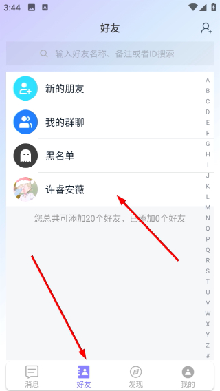 1、点击底部好友栏进入好友列表后,可点击目标好友头像进入聊天界面。