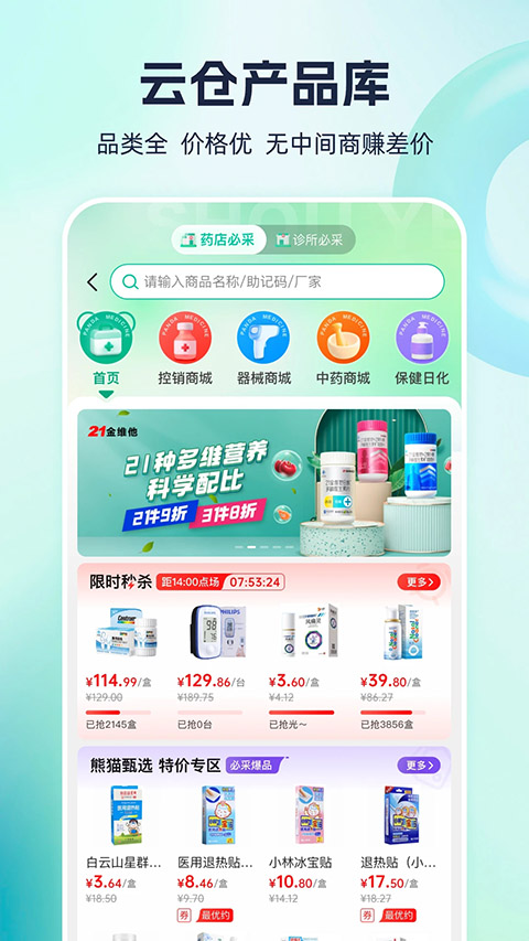 3.品类全、价格优,24小时接单、全年无休配送、没有中间商赚差价--让医药买卖更简单!