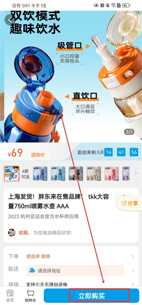 1、打开微折购App,进入你想购买的商品详情页,点击【立即购买】按钮;
