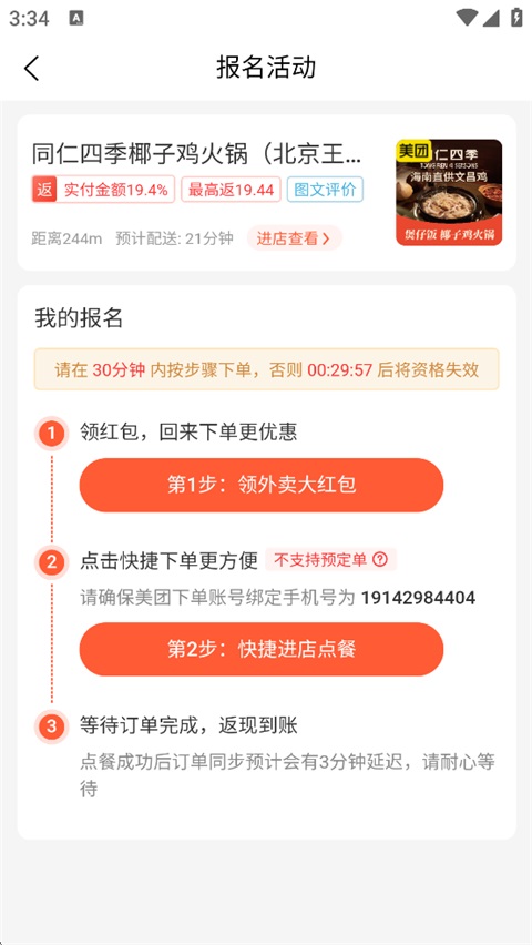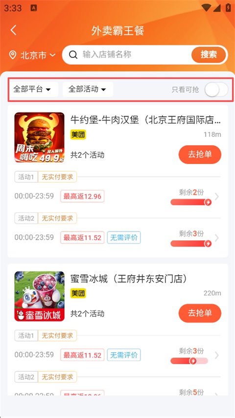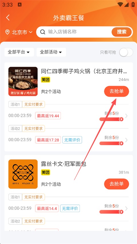 2、筛选你需要的霸王餐活动;