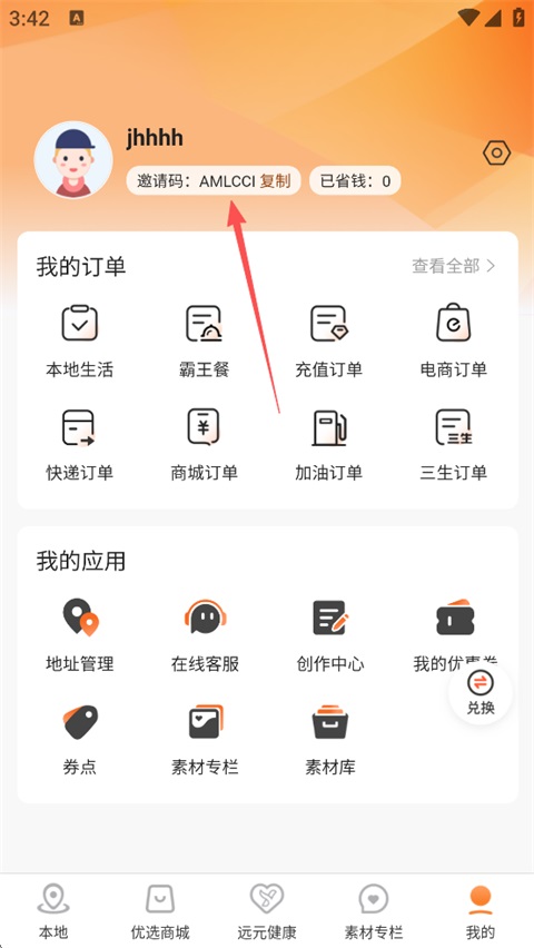 2、点击复制邀请码即可分享给好友,邀他一起趣享生活