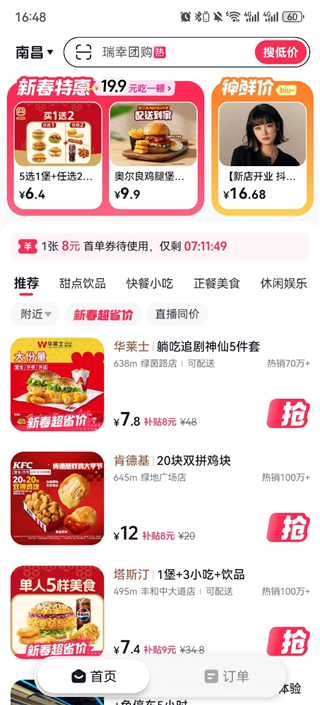 新用户首周每天领至多12元优惠券,春节畅吃、畅喝乐不停。